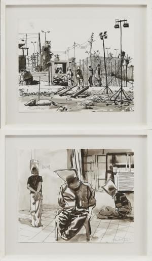 Prisonniers et camp de prisonniers, deux encres et lavis d'encre...
