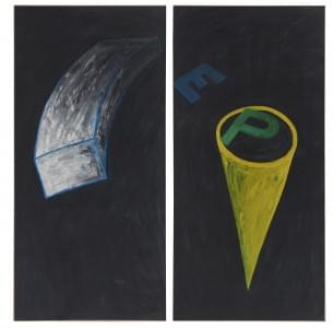 Ange Cône et initiales, dyptique, acrylique sur papier marouflé...