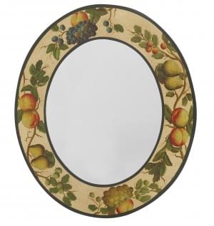 Bois sculpté et peint polychrome, glace biseautée, 90x43 cm