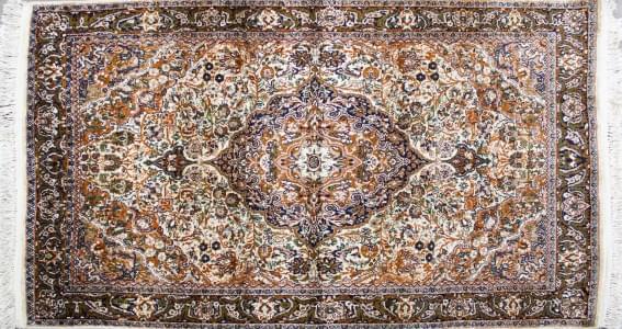 Laine à motif central sur fond rouge et vert, 110x154 cm