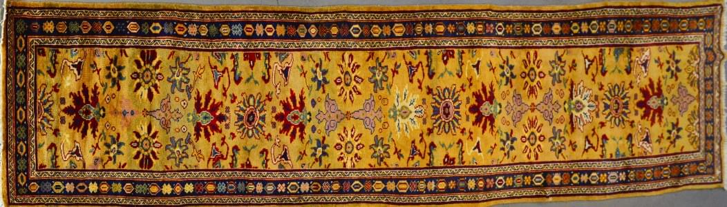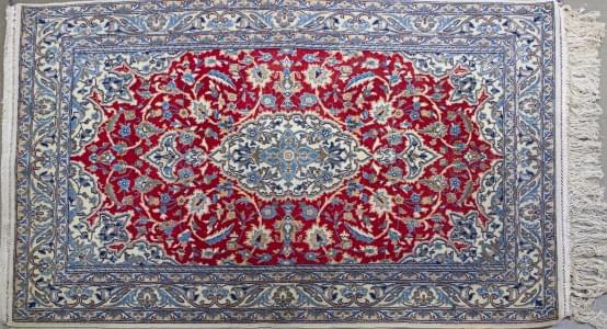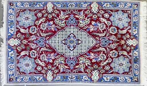 A décor d'un médaillon ivoire sur fond rouge et bleu, 87x132 cm