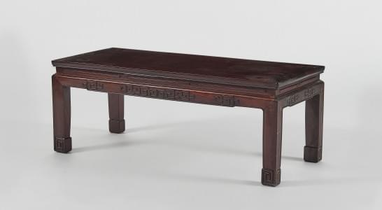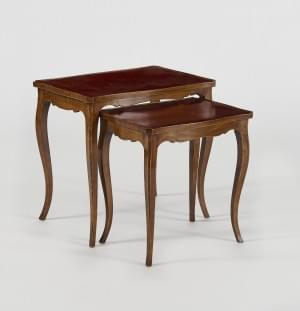 Bois au naturel et maroquin rouge doré petit fer, 58x58x39 cm