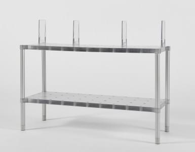 Bois au naturel, marbre blanc et galerie de laiton, H 83 cm