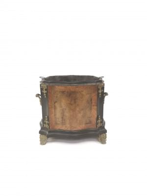 Placage de noyer, bois noirci et bronze doré, 23x29x23 cm