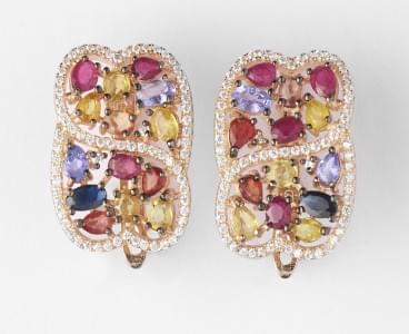3200. 6974*Boucles d'oreilles pavées de saphirs de couleur rehaussés d...