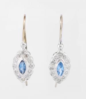 3201. 6352*Boucles d'oreilles centrées de topazes bleues taille marqui...