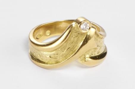 3204. Bague stylisée formant un motif de chevron rehaussé d'un diamant