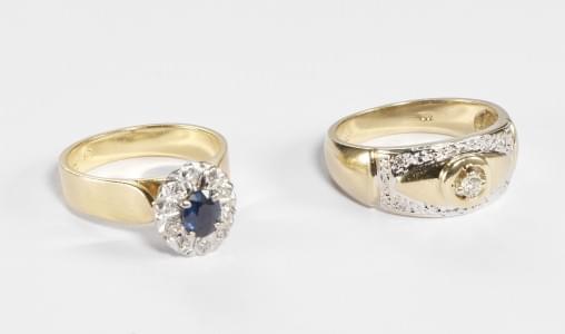 Or 750 et argent 925, doigt 52-12 et 56-16, poids brut 3 g