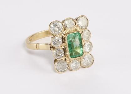 3210. Bague sertie d'une émeraude taille émeraude (env. 0,6 ct) entour...