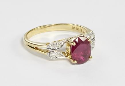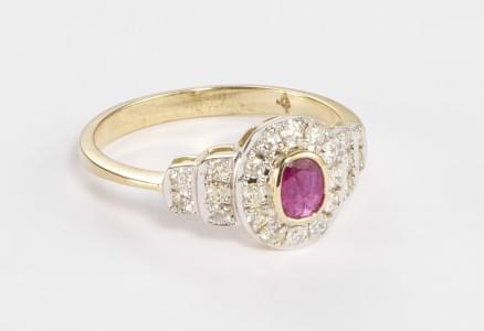 3214. 7103*Bague sertie d'un rubis taille ovale entouré de diamants