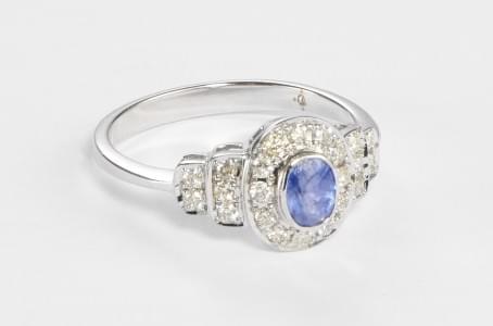 3230. 6235*Bague sertie d'un saphir taille ovale épaulé de diamants