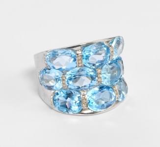 3215. *Bague sertie de topazes bleues taille ovale (env.10 ct) rehauss...