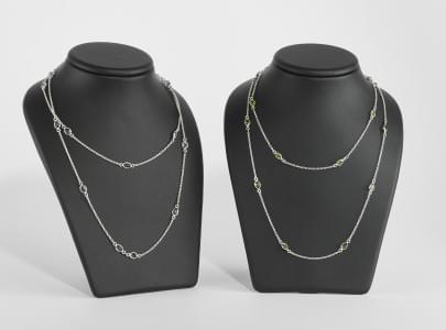 3216. 7131/7133*Lot de deux sautoirs sertis l'un de péridots taille po...