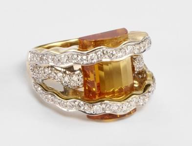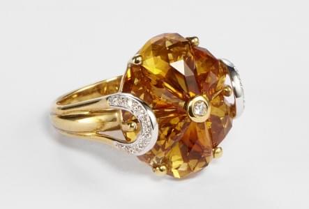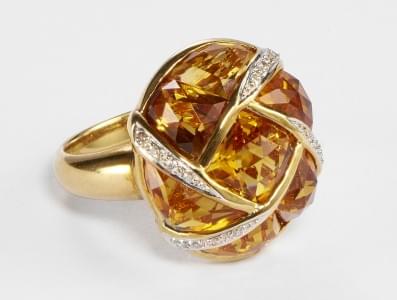 3241. Bague sertie de citrines taille fantaisie facettées rehaussées d...