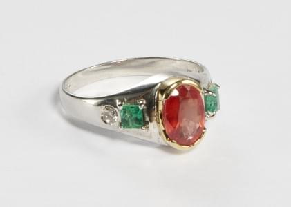 3231. 6327*Bague sertie d'un saphir orange taille ovale (env. 1 ct) ép...