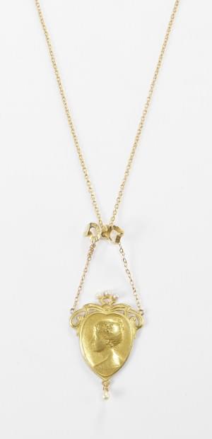 3234. Collier Art nouveau retenant un médaillon à portrait de jeune fe...