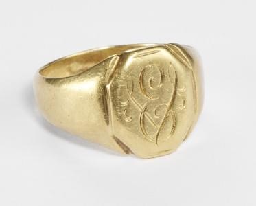 Platine, or 750 et or 585, doigt 52-12 et 56-16, poids brut 10 g