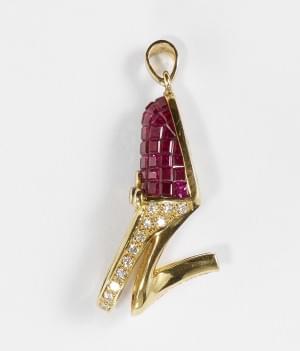 3238. Pendentif à motif d'escarpin pavé de rubis calibrés en serti inv...