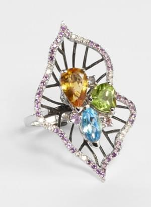 3240. Bague à motif ajouré serti d'une citrine taille poire, d'une top...