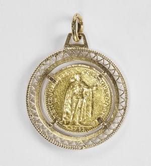 3242. Médaille ajourée sertie d'une pièce austro-hongroise de 20 couro...