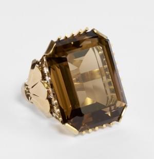 3244. Bague sertie d'un quartz fumé taille rectangle (env. 45 ct)