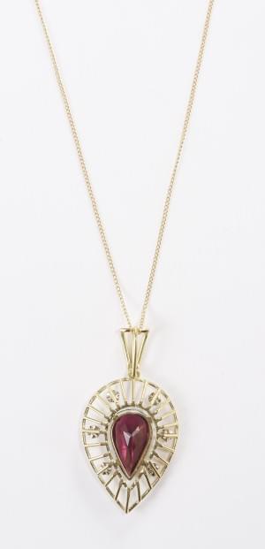 3246. Chaîne retenant un pendentif serti d'une tourmaline rose taille...