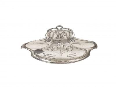 Surmonté d'une défense, métal argenté, 11,5x17 cm