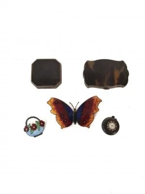 Deux boîtes en écaille, une montre entourée de demi-perles et de...