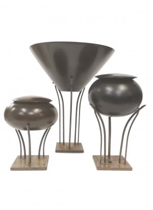 3272. Deux boîtes et une coupe sur présentoir tripode, XXe-XXIe s