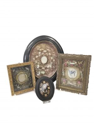 3269. Ensemble de quatre boucles de ceinture et de deux médailles reli...