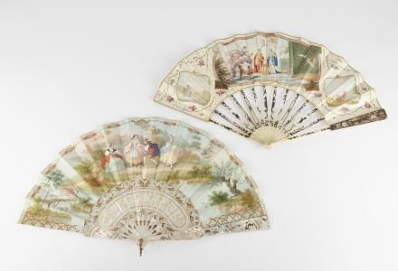 Gouache et aquarelle sur papier à décor de scènes galantes, brin...