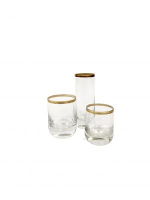 3286. Six tasses à liqueur sur présentoir à bordure bleu ciel
