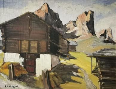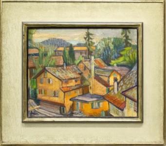 Mazots, Büchen loeche les bains, huile sur panneau, 34x42 cm