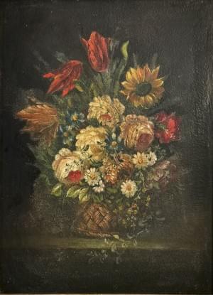 Bouquet de fleurs dans un panier en osier, huile sur toile, 47x3...