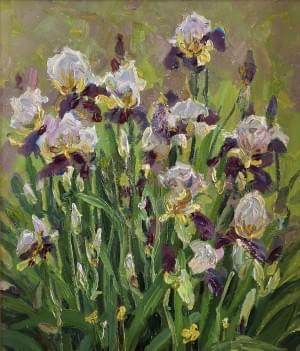 Jardin fleuri à Giverny, huile sur toile, signée, 54x73 cm