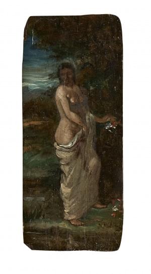 Jeune femme au bain, huile sur panneau, signée et datée 1850, 16...