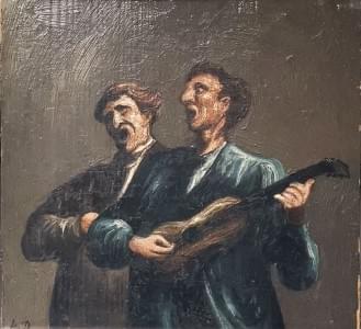 Troubadours, huile sur panneau, 11x15 cm