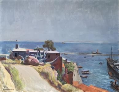 Paysage maritime, huile sur toile, signée et datée 1946, 50x61 c...