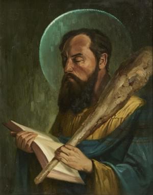Saint Thaddeus, huile sur toile, signée F. Bernhard, 70x54 cm