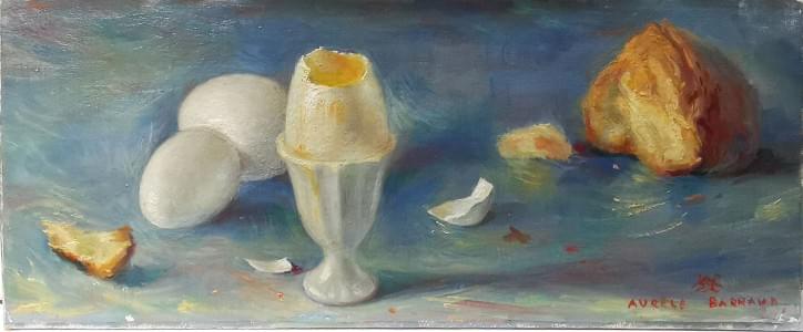 Nature morte au coquetier, huile sur carton, 18x47 cm