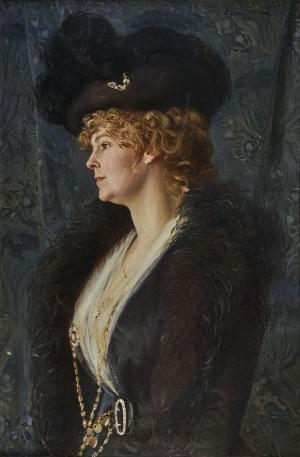 Portrait d'une élégante de profil, huile sur toile, 88x58 cm