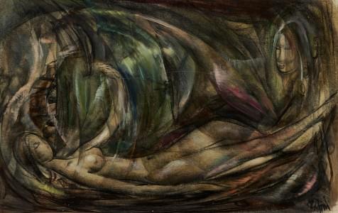 Idillio di Sigfrido, technique mixte sur panneau, signée et daté...