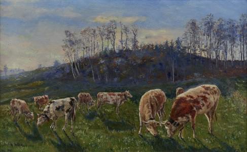 Pâturage, huile sur toile, signée et datée 1901, 38x55 cm