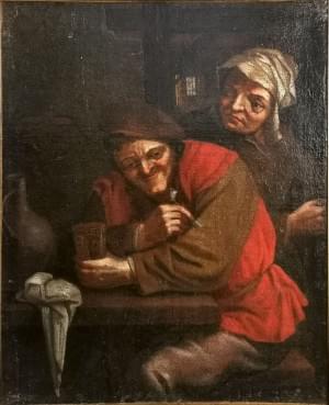 Fumeur à la pipe accompagnée, huile sur toile, 67x54 cm