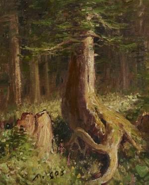 Forêt, huile sur toile, marouflée sur carton, 28,5x37 cm