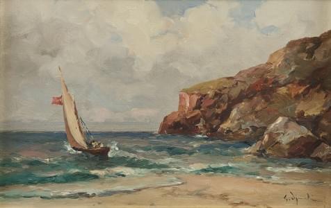 Barque et rocher, huile sur toile, 25x40 cm
