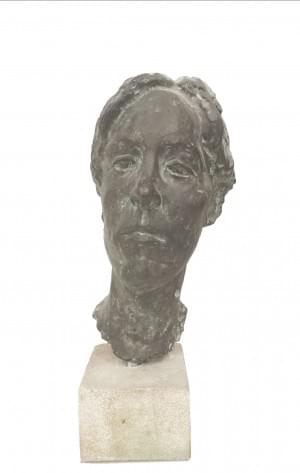 Buste de femme, bronze à patine verte, H 38 cm