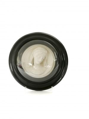 Médaillon en haut-relief, pierre volcanique sculptée, D 15 cm