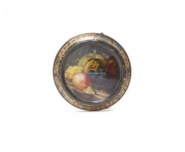 3855. Petit support tripode figurant une nature morte aux fruits, XIXe...