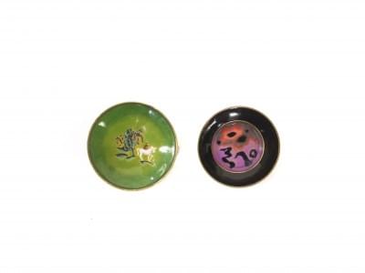 Laiton émaillé, dont un monogrammé RI D 8,5 et 9 cm